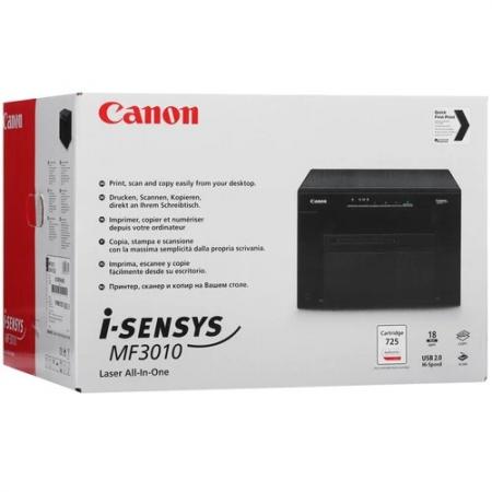 проверить балансМФУ лазерное Canon i-SENSYS MF3010 благодаря высокой производительности и надежности подходит как для офисной, так и для домашней печати различного материала. Оно совмещает в себе функциональность принтера, сканера и копировального аппарата. Выполненная на основе лазерной технологии черно-белой печати, данная модель МФУ позволяет создавать четкие и насыщенные изображения на скорости в пределах 18 стр/мин. Ресурс оригинального картриджа Canon 725 предусматривает распечатку около 1500 страниц формата А4 при стандартном заполнении. В МФУ Canon i-SENSYS MF3010 имеется интерфейсный порт USB, что обеспечивает простое подключение к ПК проводным способом. Также отмечается поддержка мобильной технологии печати Canon Print Service. Панель управления со световыми индикаторами гарантирует простой выбор необходимых параметров печати.