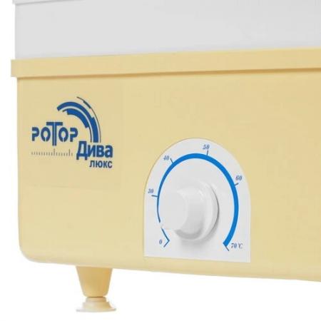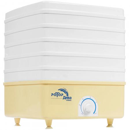 проверить балансСушилка для овощей и фруктов РОТОР ДИВА-ЛЮКС СШ-010-02 может стать незаменимым устройством на кухне вашего дома или даче при заготовке продуктов. Благодаря универсальности данная модель также подходит для обработки рыбы, различного мяса, а также зерновых изделий, зелени, корнеплодных растений. Модель отличается компактными размерами и высокой производительностью, соответствующей 520 Вт. Благодаря конвекции и вертикальной подаче воздуха обеспечивается равномерное и качественное высушивание с сохранением полезных свойств продуктов. Также есть возможностью регулировки температуры от 20 °C до 70 °C, что позволит подобрать оптимальный режим прогрева для каждого типа продуктов. Максимальная загрузка составляет 5 кг — по 1 кг на каждый из 5 противней. Сушилка для овощей и фруктов РОТОР ДИВА-ЛЮКС СШ-010-02 выполнена в классическом пластиковом корпусе бело-желтого цвета с вертикальной загрузкой, что обеспечивает удобство загрузки и компактность хранения. Для работы используется сеть 220 В.
