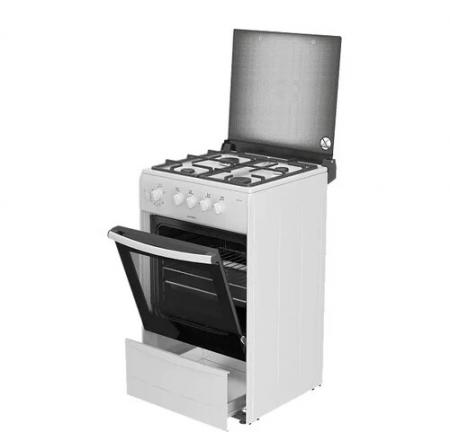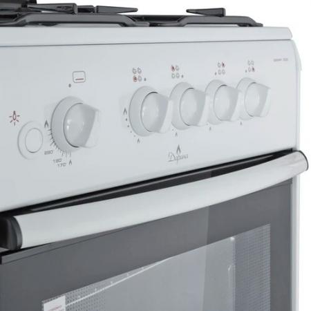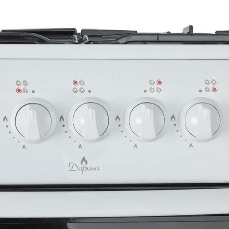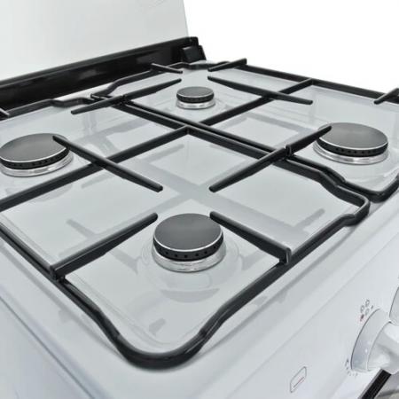 проверить балансГазовая плита DARINA 1B GM441 005W выполнена в белом цвете, который преобладает в дизайне бытовой техники для кухни, а ее габариты составляют 50х50х85 см. Варочная панель выполнена с покрытием из эмалированной стали, а решетка, накрывающая конфорки, сделана из прочного и долговечного чугуна. Всего на варочной поверхности располагаются 4 конфорки, при необходимости они могут быть закрыты крышкой. Механическая панель управления представлена пятью поворотными переключателями и кнопкой включения подсветки духового шкафа. Объем духового шкафа DARINA 1B GM441 005W составляет 50 л, противень или решетка могут устанавливаться в нем на одном из четырех возможных уровней. Стеклянные вставки в дверце и встроенная подсветка позволяют наблюдать за степенью приготовления блюд и лишний раз не открывать духовку, чтобы не нарушать температуру нагрева. Под духовкой предусмотрено пространство для хранения кухонных приборов и посуды.