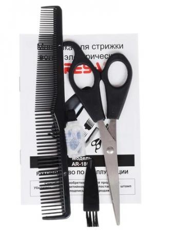 проверить балансМашинка для стрижки Aresa AR-1803 поможет сделать аккуратную прическу, не выходя из дома. Мощность представленного устройства составляет 10 Вт. Компактный корпус удобно лежит в руке за счет продуманной формы. Модель оформлена в сочетании черного и серебристого цветов. Машинка для стрижки Aresa AR-1803 оснащена 4 насадками, которые позволяют варьировать длину волос от 3 до 12 мм. Лезвия машинки изготовлены из нержавеющей стали, что обеспечивает долговечность такого устройства. У основания шнура предусмотрена специальная петелька, за которую машинку можно подвесить. К устройству прилагается щеточка для чистки и ножницы.